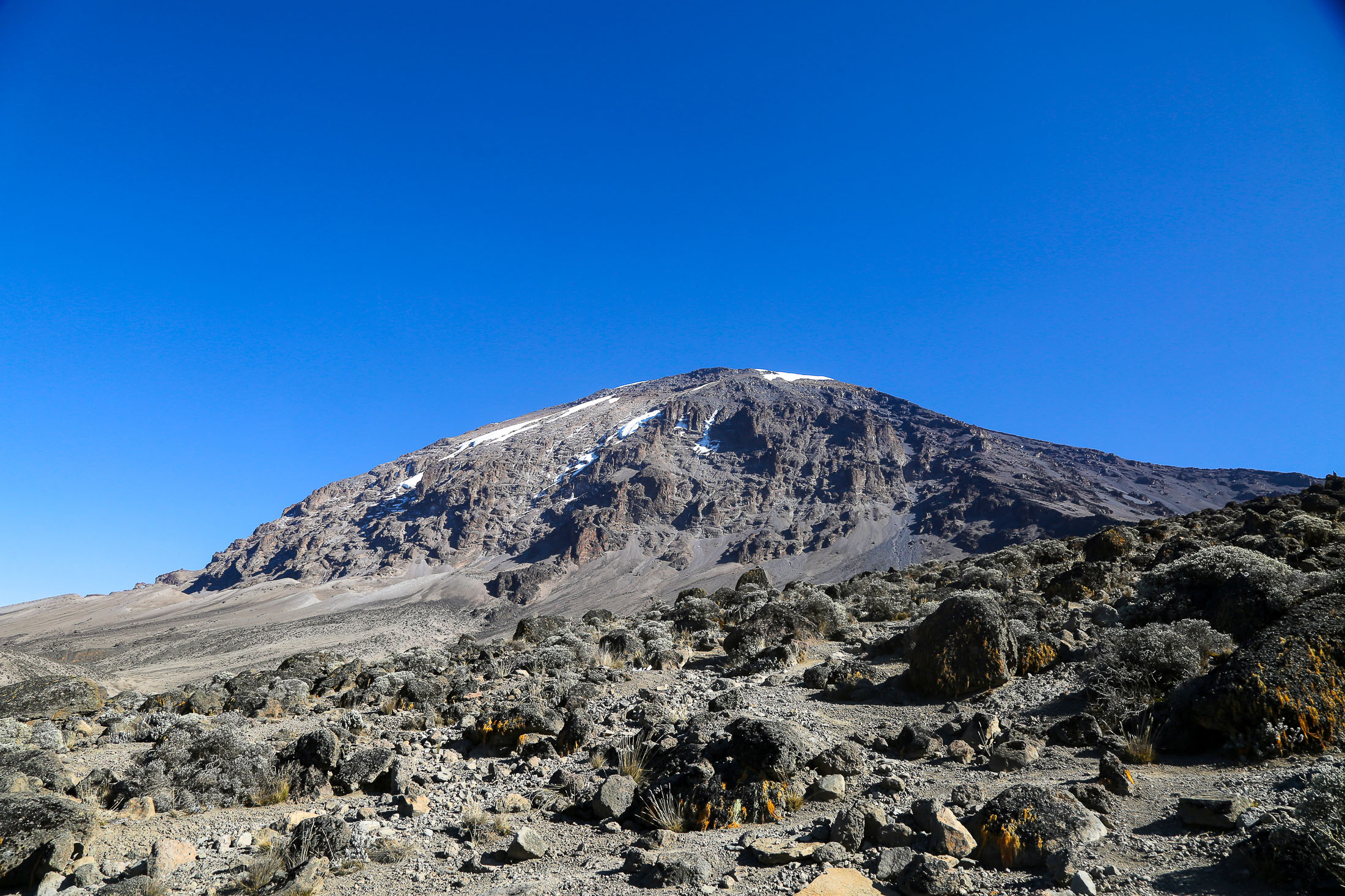 On a relatively simple trail, today’s leg will bring you over the Kibo Saddle. The absence of vegetation is one of the characteristics of the landscape here as only a few types of grass and other plant species can get along in this dry area and thin air. Just before today’s destination is reached, one last rock passage has to be conquered. Finally, you will reach the School Hut, where you can calm and mentally prepare yourself for tomorrow’s summit final